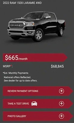 The first step in your online shopping experience is selecting the vehicle you'd like to purchase from Lithia Chrysler Dodge Jeep Ram of Bend. Filter your search to match your needs and desires by year, make, model, trim level, color, cost and more. Take a virtual stroll through our car lot to find all the most popular models like a Jeep Grand Cherokee, Jeep Wrangler, Wagoneer, Dodge Charger & Challenger or RAM pickup trucks.