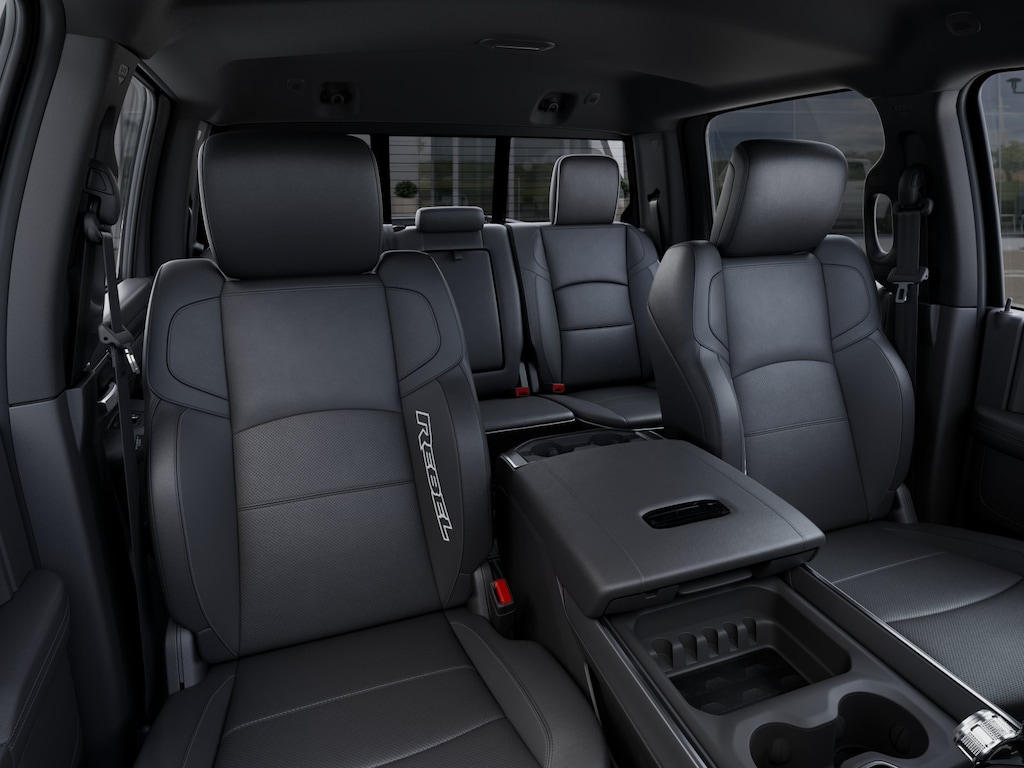 REBEL LEVEL 1 EQUIPMENT GROUP Rain Sensitive Windshield Wipers, Power Adjustable Pedals w/Memory, Body Color Door Handles, Overhead LED Lamps, Auto Dim Exterior Mirror, MOPAR Rock Rails w/Step Pad, Premium Overhead Console, 9 Alpine Speakers w/Subwoofer, Power Heated Fold Telescopic Mirrors w/Memory, Sport Performance Hood, Front Door Locks 2-Door Passive Entry, LED Interior Lighting, Auto High Beam Headlamp Control, LED Dome Lamp w/On/Off Switch, Universal Garage Door Opener, Exterior Mirrors w/Memory, MOPAR Front & Rear Rubber Floor Mats, Auto Dim Exterior Passenger Mirror, Sun Visors w/Illuminated Vanity Mirrors, Auto Adjust In Reverse Exterior Mirrors, TOWING TECHNOLOGY GROUP CTR Stop Lamp w/Cargo View Camera, Surround View Camera System, Trailer Tire Pressure Monitoring System, Trailer Reverse Guidance, BED CONVENIENCE GROUP MOPAR Spray In Bedliner, LED Bed Lighting, TRANSMISSION: 8-SPEED TORQUEFLITE HD AUTOMATIC.
