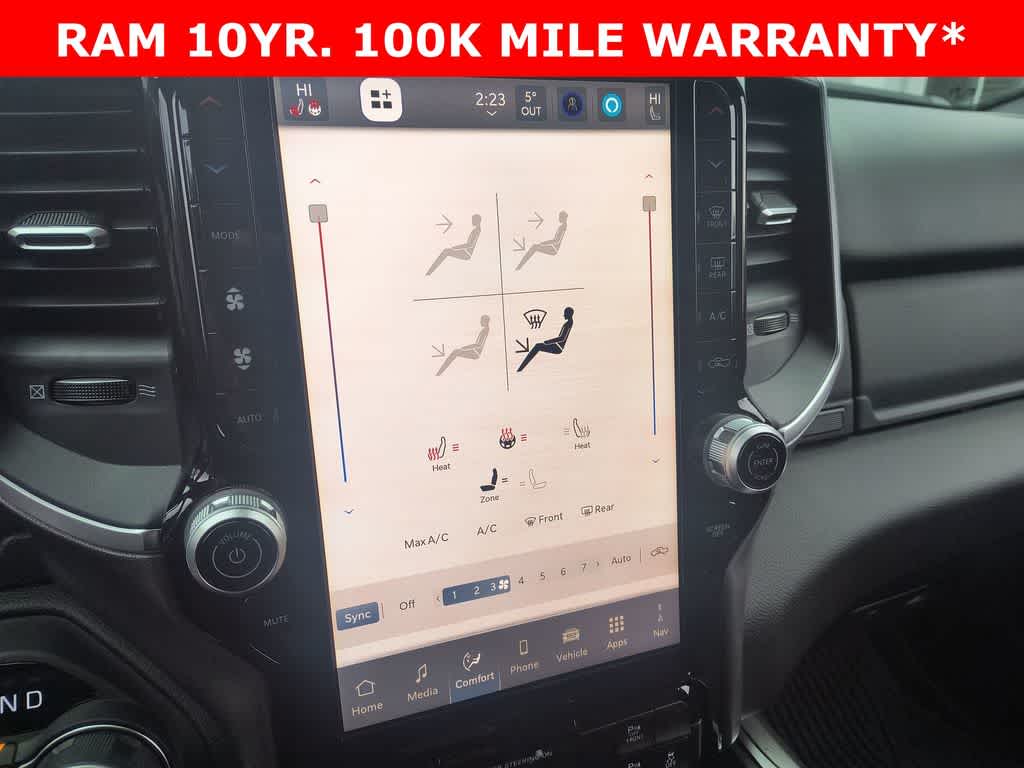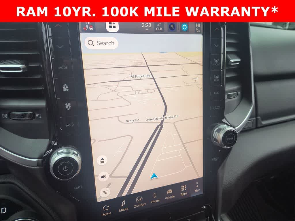 BIG HORN LEVEL 2 EQUIPMENT GROUP SiriusXM Radio Service, Power Adjustable Pedals, Leather Wrapped Steering Wheel, 12 Touchscreen Display, Glove Box Lamp, Auto Power-Folding Mirrors, 115V Auxiliary Rear Power Outlet, Media Hub w/2 Charge Only USBs, Heated Front Seats, Security Alarm, Black Premium Power Mirrors, Premium Overhead Console, 9 Amplified Speakers w/Subwoofer, Disassociated Touchscreen Display, Body Color Fender Flares, Remote Tailgate Release, 115V Auxiliary Power Outlet, LED Dome Lamp w/On/Off Switch, Universal Garage Door Opener, 2nd Row In Floor Storage Bins, Sun Visors w/Illuminated Vanity Mirrors, LED Footwell Lighting, Rear Window Defroster, Rear View Auto Dim Mirror, Rear Power Sliding Window, GPS Navigation, Overhead LED Lamps, Wheels: 20 x 9 Aluminum Chrome Clad, ENGINE: 5.7L V8 HEMI MDS VVT ETORQUE Active Noise Control System, Heavy Duty Engine Cooling, Passive Tuned Mass Damper, GVWR: 7,100 lbs, Dual Rear Exhaust w/Bright Tips, G/T Exhaust, 18 Aluminum Spare Wheel, DUAL-PANE PANORAMIC SUNROOF Dome Dual LED Reading Lamp, NIGHT EDITION Tires: 275/55R20 OWL All Season, Bridgestone Brand Tires, Accent Color Premium Power Mirrors, Exterior Mirrors w/Supplemental Signals, Black Headlamp Bezels, Exterior Mirrors Courtesy Lamps, Grille Black Surround Black Mesh, Auto Power-Folding Mirrors, Wheels: 20 x 9.0 Aluminum Painted Clad, Auto Dim Exterior Driver Mirror, Black Exterior Truck Badging, Anti-Spin Differential Rear Axle, Accent Color Door Handles, Accent Color Tailgate Handle, Black Interior Accents, Dual Exhaust w/Black Tips, Body Color Front Bumper, Body Color Rear Bumper w/Step Pads, Black Tail Lamp Bezels, RAM Grille Badge - Black, Black Painted Exterior Mirrors Caps, BED UTILITY GROUP MOPAR Spray In Bedliner, MOPAR 4 Adjustable Cargo Tie-Down Hooks, Pick-Up Box Lighting, Exterior 115V AC Outlet, MOPAR FRONT & REAR RUBBER FLOOR MATS, TRANSMISSION: 8-SPEED AUTOMATIC (8HP75).