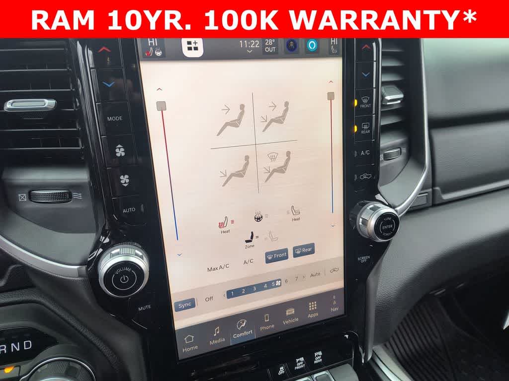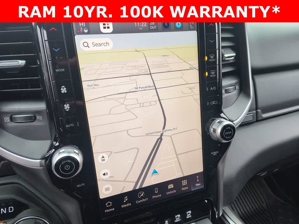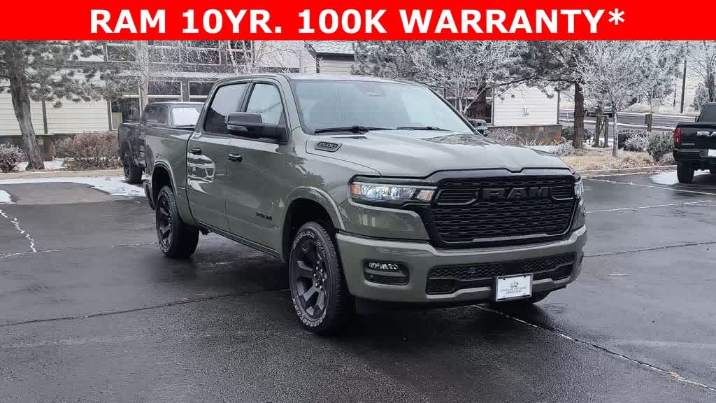BIG HORN LEVEL 2 EQUIPMENT GROUP SiriusXM Radio Service, Power Adjustable Pedals, Leather Wrapped Steering Wheel, 12 Touchscreen Display, Glove Box Lamp, Auto Power-Folding Mirrors, 115V Auxiliary Rear Power Outlet, Media Hub w/2 Charge Only USBs, Heated Front Seats, Security Alarm, Black Premium Power Mirrors, Premium Overhead Console, 9 Amplified Speakers w/Subwoofer, Disassociated Touchscreen Display, Body Color Fender Flares, Remote Tailgate Release, 115V Auxiliary Power Outlet, LED Dome Lamp w/On/Off Switch, Universal Garage Door Opener, 2nd Row In Floor Storage Bins, Sun Visors w/Illuminated Vanity Mirrors, LED Footwell Lighting, Rear Window Defroster, Rear View Auto Dim Mirror, Rear Power Sliding Window, GPS Navigation, Overhead LED Lamps, Wheels: 20 x 9 Aluminum Chrome Clad, NIGHT EDITION Tires: 275/55R20 OWL All Season, Bridgestone Brand Tires, Accent Color Premium Power Mirrors, Exterior Mirrors w/Supplemental Signals, Black Headlamp Bezels, Exterior Mirrors Courtesy Lamps, Grille Black Surround Black Mesh, Auto Power-Folding Mirrors, Wheels: 20 x 9.0 Aluminum Painted Clad, Auto Dim Exterior Driver Mirror, Black Exterior Truck Badging, Anti-Spin Differential Rear Axle, Accent Color Door Handles, Accent Color Tailgate Handle, Black Interior Accents, Dual Exhaust w/Black Tips, Body Color Front Bumper, Body Color Rear Bumper w/Step Pads, Black Tail Lamp Bezels, RAM Grille Badge - Black, Black Painted Exterior Mirrors Caps, BED UTILITY GROUP MOPAR Spray In Bedliner, MOPAR 4 Adjustable Cargo Tie-Down Hooks, Pick-Up Box Lighting, Exterior 115V AC Outlet, MOPAR FRONT & REAR RUBBER FLOOR MATS, TRANSMISSION: 8-SPEED AUTOMATIC (8HP75).