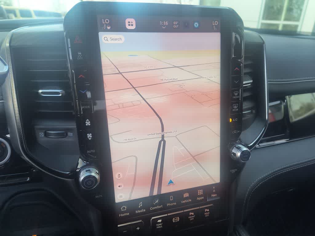 REBEL LEVEL 2 EQUIPMENT GROUP Power Adjustable Pedals w/Memory, Front Passenger Interactive Display, Power Deployable Running Boards, MOPAR Deployable Bed Step, Premium Overhead Console, Leather Wrapped Shift Control, 17 Speaker harman/kardon® Premium Sound, LED Interior Lighting, LED Dome Lamp w/On/Off Switch, Universal Garage Door Opener, Sun Visors w/Illuminated Vanity Mirrors, CTR Stop Lamp w/Cargo View Camera, Rain Sensitive Windshield Wipers, LED Bed Lighting, Body Color Door Handles, Overhead LED Lamps, Auto Dim Exterior Mirror, Leather Wrapped Grab Handle, 14.4 Touchscreen Display, Power Heated Fold Telescopic Mirrors w/Memory, Sport Performance Hood, Radio: Uconnect 5 Nav w/14.4 Display, MOPAR Spray In Bedliner, Front Door Locks 2-Door Passive Entry, Auto High Beam Headlamp, TOWING TECHNOLOGY GROUP MOPAR Trailer Camera Wiring w/No Camera, Surround View Camera System, Trailer Tire Pressure Monitoring System, Trailer Reverse Guidance, POWER SUNROOF, TRANSMISSION: 8-SPEED TORQUEFLITE HD AUTOMATIC.
