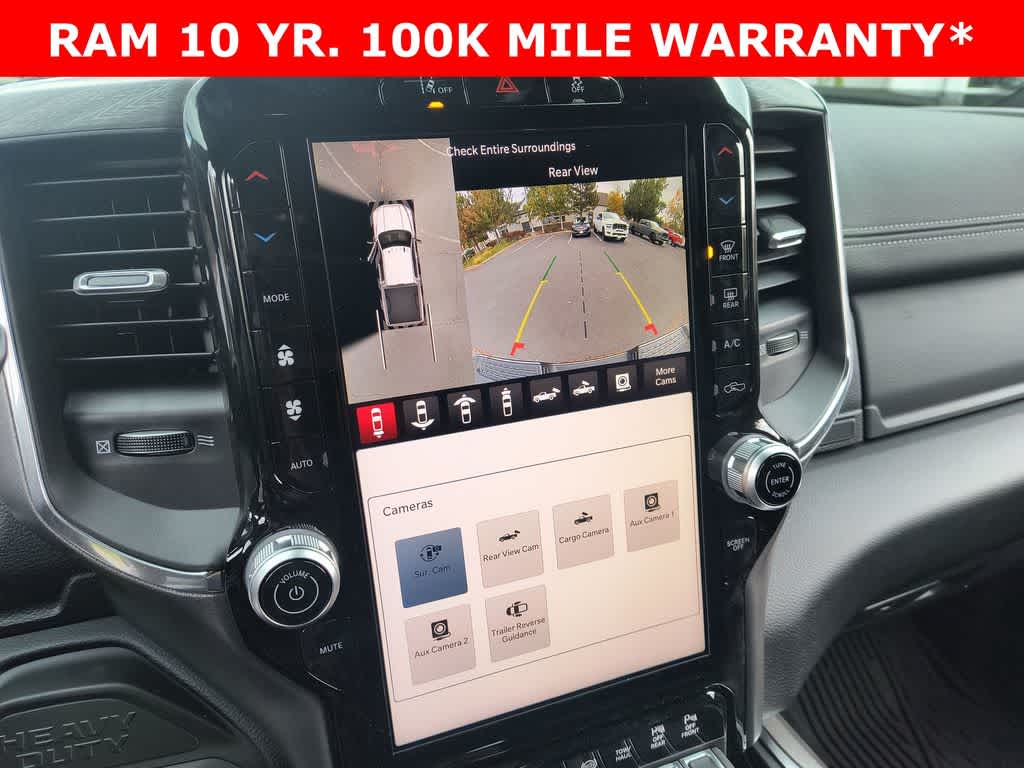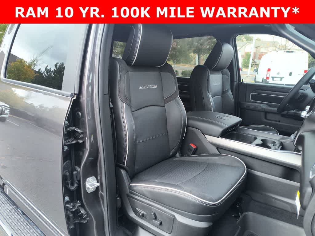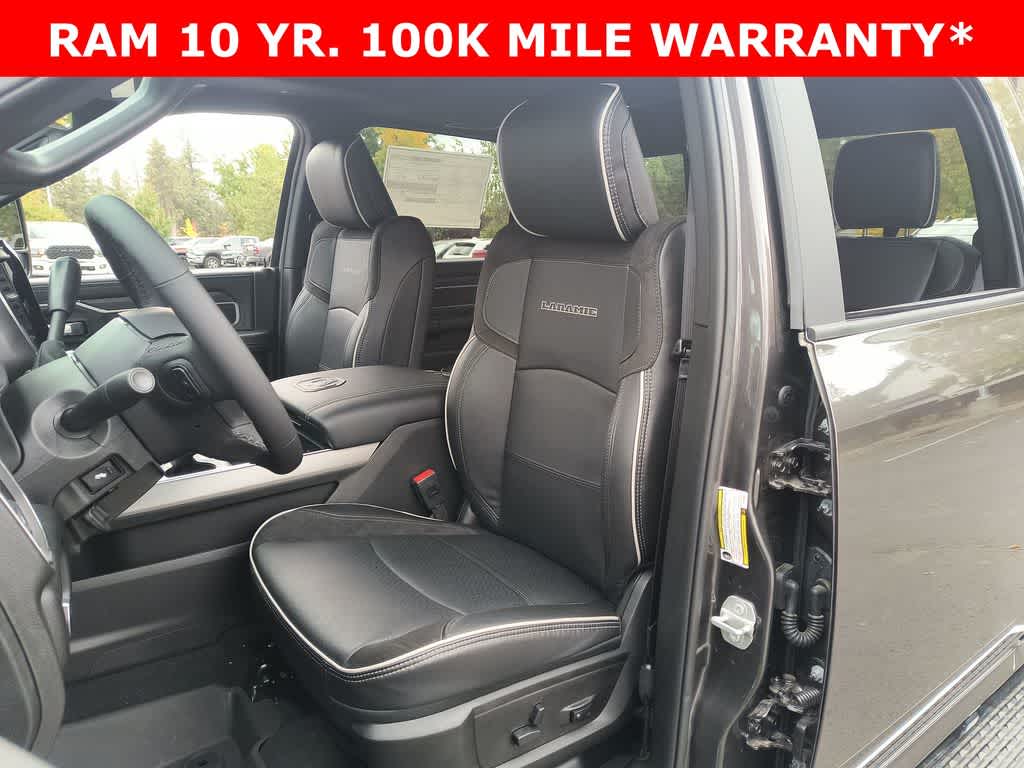 LARAMIE LEVEL 1 PLUS EQUIPMENT GROUP CTR Stop Lamp w/Cargo View Camera, Rain Sensitive Windshield Wipers, Power Adjustable Pedals w/Memory, LED Bed Lighting, Traffic Sign Recognition, Adaptive Steering System, Auto Dim Exterior Mirror, Anti-Spin Differential Rear Axle, Heated Second Row Seats, Drowsy Driver Detection, MOPAR Deployable Bed Step, Foam Bottle Insert (Door Trim Panel), Active Lane Management System, Power Heated Fold Telescopic Mirrors w/Memory, MOPAR Spray In Bedliner, Remote Tailgate Release, Auto High Beam Headlamp Control, Exterior Mirrors w/Memory, 2nd Row In Floor Storage Bins, Auto Dim Exterior Passenger Mirror, Auto Adjust In Reverse Exterior Mirrors, TOWING TECHNOLOGY GROUP Surround View Camera System, Trailer Tire Pressure Monitoring System, Trailer Reverse Guidance, POWER SUNROOF, CHROME FLAT WHEEL-TO-WHEEL SIDE STEPS, MOPAR FRONT & REAR RUBBER FLOOR MATS, TRANSMISSION: 8-SPEED TORQUEFLITE HD AUTOMATIC, BLACK, LEATHER TRIMMED BUCKET SEATS Bucket Seats, Dual Wireless Charging Pad, Ventilated Front Seats, Radio/Driver Seat/Mirrors/Pedals Memory, Full Length Upgraded Floor Console.