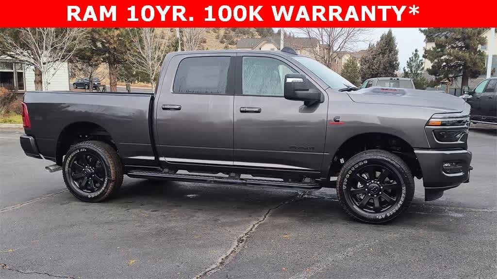 ENGINE: 6.7L I6 CUMMINS HO TURBO DIESEL Selective Catalytic Reduction (Urea), Dual 730 Amp Maintenance Free Batteries, Cummins Turbo Diesel Badge, Heavy Duty Engine Cooling, Diesel Exhaust Brake, Supplemental Heater, 3.42 Axle Ratio, Front Bumper Sight Shields, Capless Fuel Fill w/o Discriminator, GVWR: 11,040 lbs, NIGHT EDITION Tires: LT285/60R20E OWL On/Off Road, Black Exterior Truck Badging, Wheels: 20 x 8.0 Black Painted Aluminum, Gloss Black Grille Billets/Accents, Body Color Grille-Surround, Sport Performance Hood, Black Exterior Mirrors, LARAMIE LEVEL 1 PLUS EQUIPMENT GROUP CTR Stop Lamp w/Cargo View Camera, Rain Sensitive Windshield Wipers, Power Adjustable Pedals w/Memory, LED Bed Lighting, Traffic Sign Recognition, Adaptive Steering System, Auto Dim Exterior Mirror, Anti-Spin Differential Rear Axle, Heated Second Row Seats, Drowsy Driver Detection, MOPAR Deployable Bed Step, Foam Bottle Insert (Door Trim Panel), Active Lane Management System, Power Heated Fold Telescopic Mirrors w/Memory, MOPAR Spray In Bedliner, Remote Tailgate Release, Auto High Beam Headlamp Control, Exterior Mirrors w/Memory, 2nd Row In Floor Storage Bins, Auto Dim Exterior Passenger Mirror, Auto Adjust In Reverse Exterior Mirrors, TOWING TECHNOLOGY GROUP Surround View Camera System, Trailer Tire Pressure Monitoring System, Trailer Reverse Guidance, POWER SUNROOF, PAINTED FLAT WHEEL-TO-WHEEL SIDE STEPS, TRANSMISSION: 8-SPEED TORQUEFLITE HD AUTOMATIC, BLACK, LEATHER TRIMMED BUCKET SEATS Bucket Seats, Dual Wireless Charging Pad, Ventilated Front Seats, Radio/Driver Seat/Mirrors/Pedals Memory, Full Length Upgraded Floor Console.
