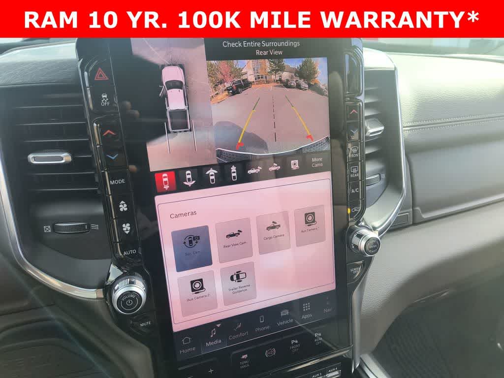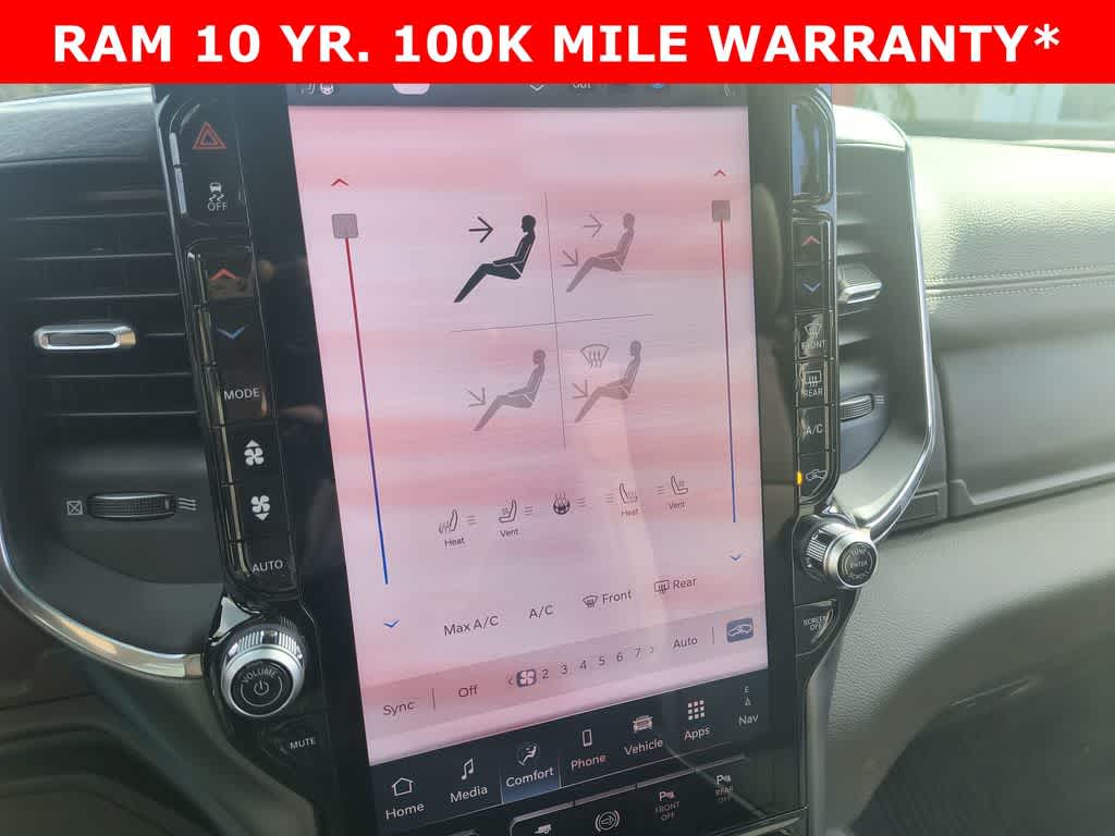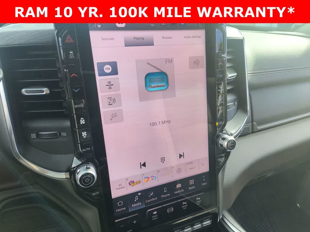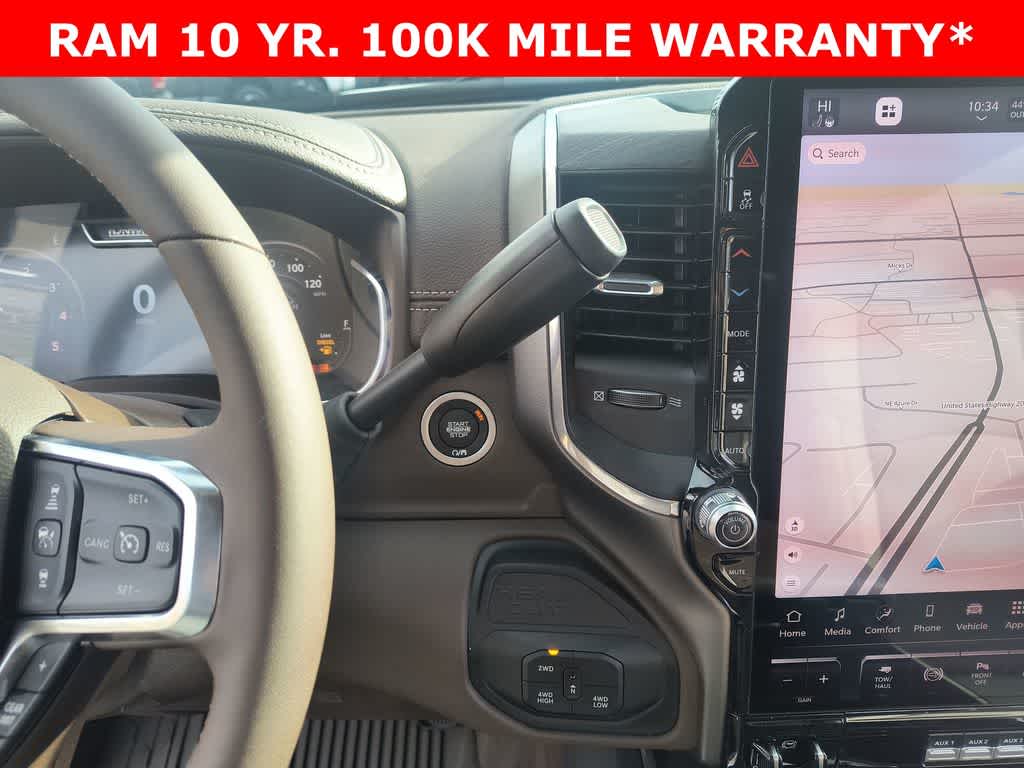 LARAMIE LEVEL 2 EQUIPMENT GROUP Rain Sensitive Windshield Wipers, Power Adjustable Pedals w/Memory, Auto Dim Exterior Mirror, Anti-Spin Differential Rear Axle, Foam Bottle Insert (Door Trim Panel), 14.4 Touchscreen Display, Power Heated Fold Telescopic Mirrors w/Memory, Radio: Uconnect 5 Nav w/14.4 Display, Remote Tailgate Release, 17 Speaker harman/kardon® Premium Sound, Auto High Beam Headlamp Control, Exterior Mirrors w/Memory, 2nd Row In Floor Storage Bins, Auto Dim Exterior Passenger Mirror, Auto Adjust In Reverse Exterior Mirrors, TOWING TECHNOLOGY GROUP Surround View Camera System, Trailer Tire Pressure Monitoring System, Trailer Reverse Guidance, POWER DEPLOYABLE RUNNING BOARDS, BED UTILITY GROUP MOPAR Spray In Bedliner, LED Bed Lighting, MOPAR Deployable Bed Step, MOPAR FRONT & REAR RUBBER FLOOR MATS, TRANSMISSION: 8-SPEED TORQUEFLITE HD AUTOMATIC, BISON BROWN/SEA SALT, LEATHER TRIMMED BUCKET SEATS Bucket Seats, Dual Wireless Charging Pad, Ventilated Front Seats, Radio/Driver Seat/Mirrors/Pedals Memory, Full Length Upgraded Floor Console.