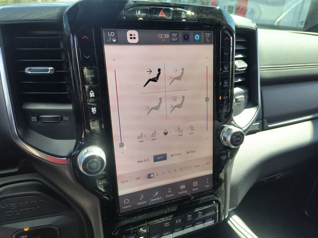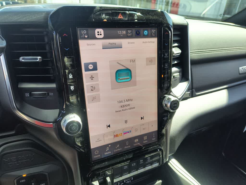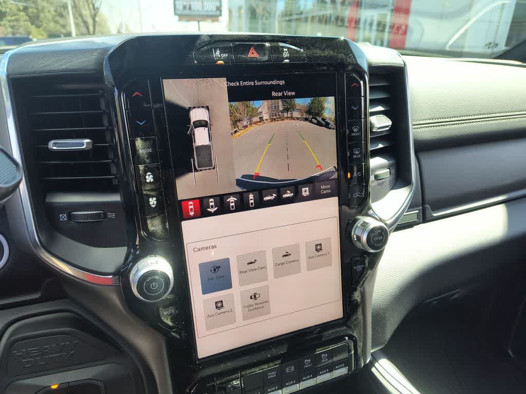 LARAMIE LEVEL 1 PLUS EQUIPMENT GROUP CTR Stop Lamp w/Cargo View Camera, Rain Sensitive Windshield Wipers, Power Adjustable Pedals w/Memory, LED Bed Lighting, Traffic Sign Recognition, Adaptive Steering System, Auto Dimming Exterior Mirrors, Drowsy Driver Detection, MOPAR Deployable Bed Step, Foam Bottle Insert (Door Trim Panel), Active Lane Management System, Power Heat Fold Memory Telescopic Mirrors, MOPAR Spray In Bedliner, Remote Tailgate Release, Auto High Beam Headlamp Control, Exterior Mirrors w/Memory, 2nd Row In Floor Storage Bins, Auto Dimming Exterior Passenger Mirror, Auto Adjust In Reverse Exterior Mirrors, TOWING TECHNOLOGY GROUP CTR Stop Lamp w/Cargo View Camera, MOPAR Trailer Camera Wiring w/No Camera, Surround View Camera System, Trailer Tire Pressure Monitoring System, Trailer Reverse Guidance, POWER SUNROOF, TRANSMISSION: 8-SPEED TORQUEFLITE HD AUTOMATIC, BLACK, LEATHER TRIMMED BUCKET SEATS Bucket Seats, Dual Wireless Charging Pad, Ventilated Front Seats, Radio/Driver Seat/Mirrors/Pedals Memory, Full Length Upgraded Floor Console.