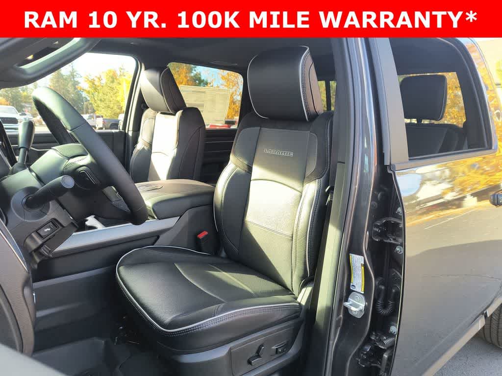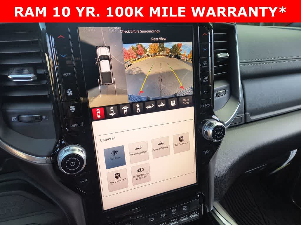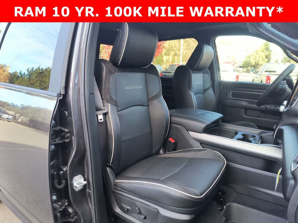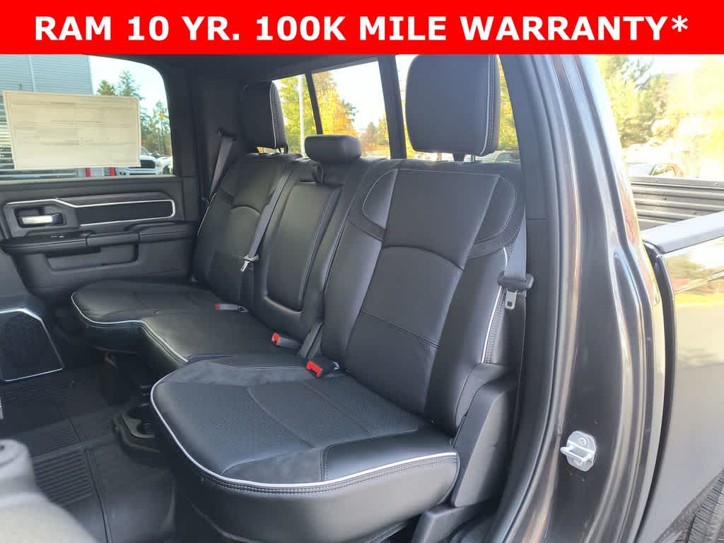 LARAMIE LEVEL 1 PLUS EQUIPMENT GROUP CTR Stop Lamp w/Cargo View Camera, Rain Sensitive Windshield Wipers, Power Adjustable Pedals w/Memory, LED Bed Lighting, Traffic Sign Recognition, Adaptive Steering System, Auto Dimming Exterior Mirrors, Drowsy Driver Detection, MOPAR Deployable Bed Step, Foam Bottle Insert (Door Trim Panel), Active Lane Management System, Power Heat Fold Memory Telescopic Mirrors, MOPAR Spray In Bedliner, Remote Tailgate Release, Auto High Beam Headlamp Control, Exterior Mirrors w/Memory, 2nd Row In Floor Storage Bins, Auto Dimming Exterior Passenger Mirror, Auto Adjust In Reverse Exterior Mirrors, TOWING TECHNOLOGY GROUP CTR Stop Lamp w/Cargo View Camera, Surround View Camera System, Trailer Tire Pressure Monitoring System, Trailer Reverse Guidance, POWER SUNROOF, MOPAR FRONT & REAR RUBBER FLOOR MATS, TRANSMISSION: 8-SPEED TORQUEFLITE HD AUTOMATIC 12.0 Single Rear Wheel Axle, BLACK, LEATHER TRIMMED BUCKET SEATS Bucket Seats, Dual Wireless Charging Pad, Full Length Upgraded Floor Console.