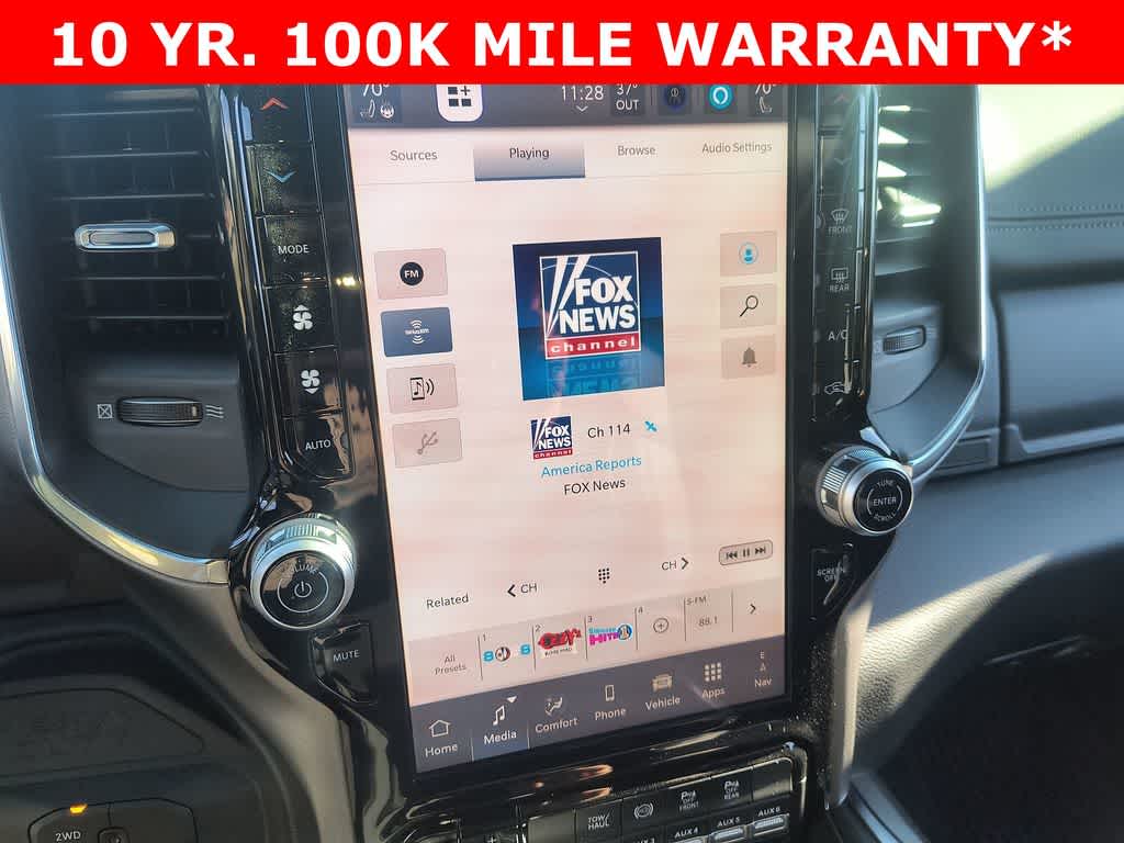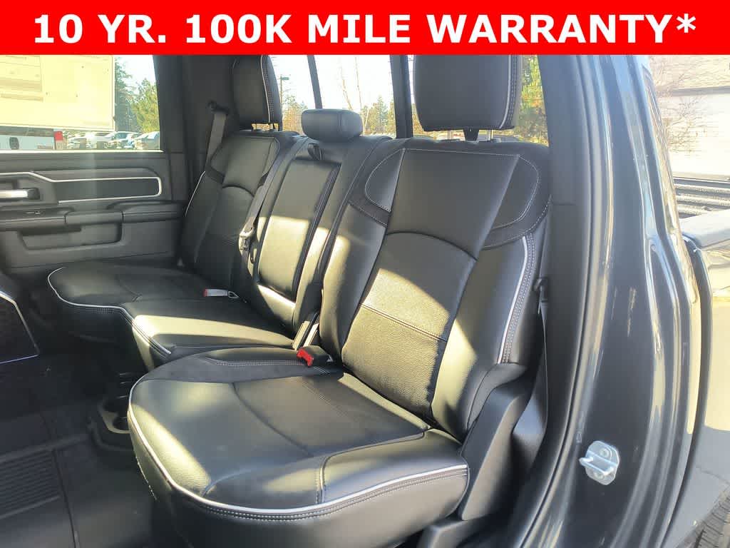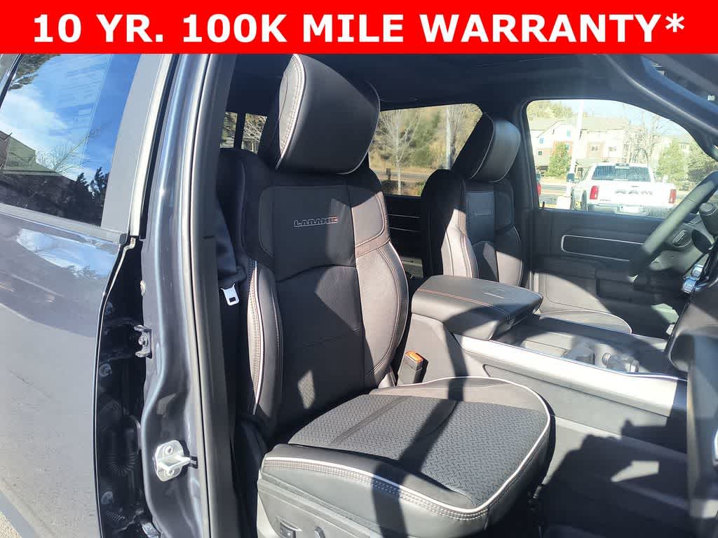LARAMIE LEVEL 1 PLUS EQUIPMENT GROUP CTR Stop Lamp w/Cargo View Camera, Rain Sensitive Windshield Wipers, Power Adjustable Pedals w/Memory, LED Bed Lighting, Traffic Sign Recognition, Adaptive Steering System, Auto Dimming Exterior Mirrors, Drowsy Driver Detection, MOPAR Deployable Bed Step, Foam Bottle Insert (Door Trim Panel), Active Lane Management System, Power Heat Fold Memory Telescopic Mirrors, MOPAR Spray In Bedliner, Remote Tailgate Release, Auto High Beam Headlamp Control, Exterior Mirrors w/Memory, 2nd Row In Floor Storage Bins, Auto Dimming Exterior Passenger Mirror, Auto Adjust In Reverse Exterior Mirrors, TOWING TECHNOLOGY GROUP CTR Stop Lamp w/Cargo View Camera, Surround View Camera System, Trailer Tire Pressure Monitoring System, Trailer Reverse Guidance, POWER SUNROOF, MOPAR FRONT & REAR RUBBER FLOOR MATS, TRANSMISSION: 8-SPEED TORQUEFLITE HD AUTOMATIC 12.0 Single Rear Wheel Axle, BLACK, LEATHER TRIMMED BUCKET SEATS Bucket Seats, Dual Wireless Charging Pad, Full Length Upgraded Floor Console.
