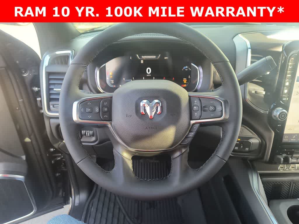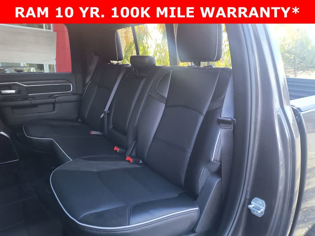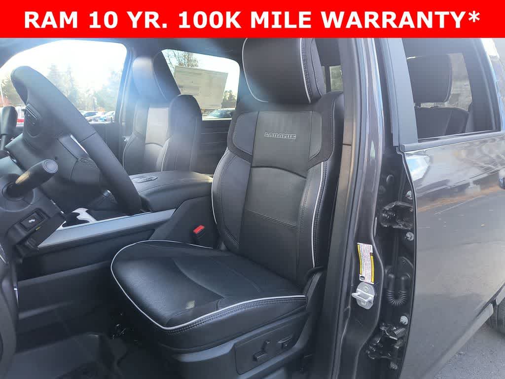 LARAMIE LEVEL 1 PLUS EQUIPMENT GROUP CTR Stop Lamp w/Cargo View Camera, Rain Sensitive Windshield Wipers, Power Adjustable Pedals w/Memory, LED Bed Lighting, Traffic Sign Recognition, Adaptive Steering System, Auto Dimming Exterior Mirrors, Drowsy Driver Detection, MOPAR Deployable Bed Step, Foam Bottle Insert (Door Trim Panel), Active Lane Management System, Power Heat Fold Memory Telescopic Mirrors, MOPAR Spray In Bedliner, Remote Tailgate Release, Auto High Beam Headlamp Control, Exterior Mirrors w/Memory, 2nd Row In Floor Storage Bins, Auto Dimming Exterior Passenger Mirror, Auto Adjust In Reverse Exterior Mirrors, TOWING TECHNOLOGY GROUP CTR Stop Lamp w/Cargo View Camera, Surround View Camera System, Trailer Tire Pressure Monitoring System, Trailer Reverse Guidance, POWER SUNROOF, MOPAR FRONT & REAR RUBBER FLOOR MATS, TRANSMISSION: 8-SPEED TORQUEFLITE HD AUTOMATIC 12.0 Single Rear Wheel Axle, BLACK, LEATHER TRIMMED BUCKET SEATS Bucket Seats, Dual Wireless Charging Pad, Full Length Upgraded Floor Console.