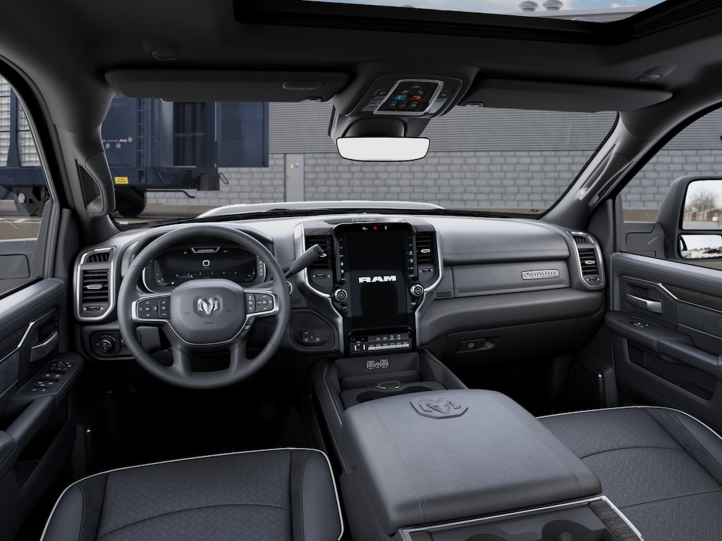 LARAMIE LEVEL 1 PLUS EQUIPMENT GROUP CTR Stop Lamp w/Cargo View Camera, Rain Sensitive Windshield Wipers, Power Adjustable Pedals w/Memory, LED Bed Lighting, Traffic Sign Recognition, Adaptive Steering System, Auto Dimming Exterior Mirrors, Drowsy Driver Detection, MOPAR Deployable Bed Step, Foam Bottle Insert (Door Trim Panel), Active Lane Management System, Power Heat Fold Memory Telescopic Mirrors, MOPAR Spray In Bedliner, Remote Tailgate Release, Auto High Beam Headlamp Control, Exterior Mirrors w/Memory, 2nd Row In Floor Storage Bins, Auto Dimming Exterior Passenger Mirror, Auto Adjust In Reverse Exterior Mirrors, TOWING TECHNOLOGY GROUP CTR Stop Lamp w/Cargo View Camera, MOPAR Trailer Camera Wiring w/No Camera, Surround View Camera System, Trailer Tire Pressure Monitoring System, Trailer Reverse Guidance, POWER SUNROOF, TRANSMISSION: 8-SPEED TORQUEFLITE HD AUTOMATIC, BLACK, LEATHER TRIMMED BUCKET SEATS Bucket Seats, Dual Wireless Charging Pad, Ventilated Front Seats, Radio/Driver Seat/Mirrors/Pedals Memory, Full Length Upgraded Floor Console.