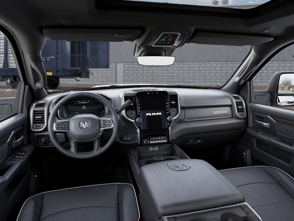 ENGINE: 6.7L I6 CUMMINS HO TURBO DIESEL Selective Catalytic Reduction (Urea), Dual 730 Amp Maintenance Free Batteries, Cummins Turbo Diesel Badge, Heavy Duty Engine Cooling, Current Generation Engine Controller, Diesel Exhaust Brake, Supplemental Heater, 3.42 Axle Ratio, Front Bumper Sight Shields, Capless Fuel Fill w/o Discriminator, LARAMIE LEVEL 1 PLUS EQUIPMENT GROUP CTR Stop Lamp w/Cargo View Camera, Rain Sensitive Windshield Wipers, Power Adjustable Pedals w/Memory, LED Bed Lighting, Traffic Sign Recognition, Adaptive Steering System, Auto Dimming Exterior Mirrors, Drowsy Driver Detection, MOPAR Deployable Bed Step, Foam Bottle Insert (Door Trim Panel), Active Lane Management System, Power Heat Fold Memory Telescopic Mirrors, MOPAR Spray In Bedliner, Remote Tailgate Release, Auto High Beam Headlamp Control, Exterior Mirrors w/Memory, 2nd Row In Floor Storage Bins, Auto Dimming Exterior Passenger Mirror, Auto Adjust In Reverse Exterior Mirrors, TOWING TECHNOLOGY GROUP CTR Stop Lamp w/Cargo View Camera, MOPAR Trailer Camera Wiring w/No Camera, Surround View Camera System, Trailer Tire Pressure Monitoring System, Trailer Reverse Guidance, POWER SUNROOF, TRANSMISSION: 8-SPEED TORQUEFLITE HD AUTOMATIC, BLACK, LEATHER TRIMMED BUCKET SEATS Bucket Seats, Dual Wireless Charging Pad, Ventilated Front Seats, Radio/Driver Seat/Mirrors/Pedals Memory, Full Length Upgraded Floor Console.