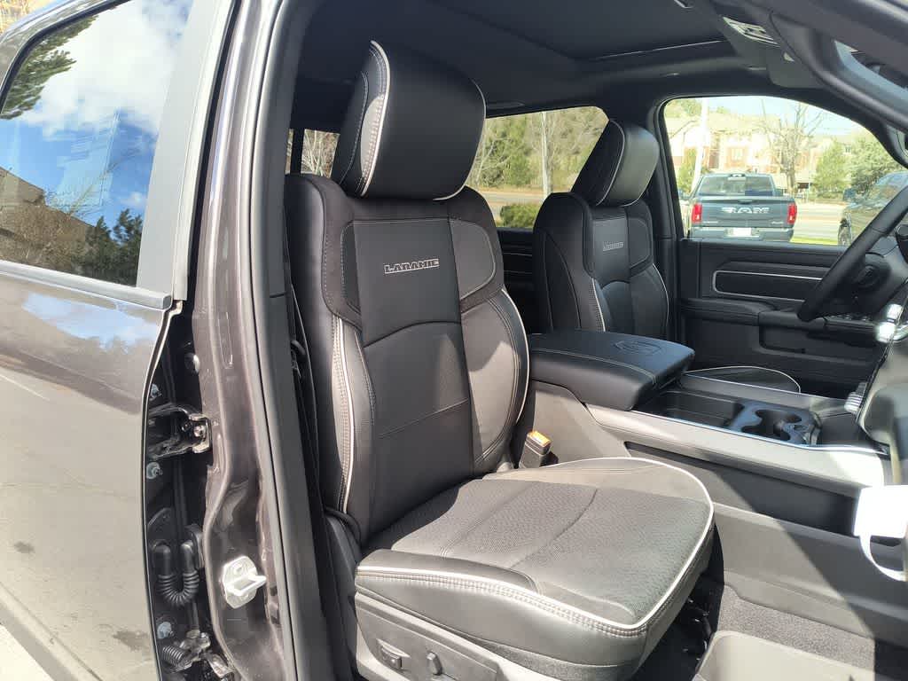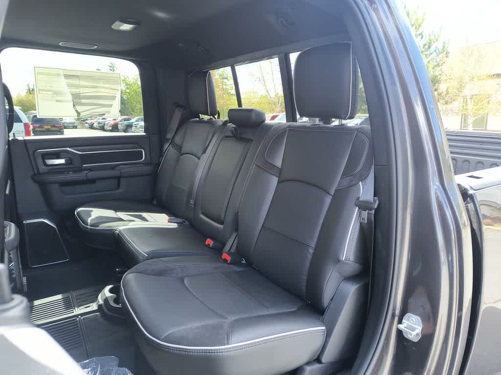 ENGINE: 6.7L I6 CUMMINS HO TURBO DIESEL Selective Catalytic Reduction (Urea), Dual 730 Amp Maintenance Free Batteries, Cummins Turbo Diesel Badge, Heavy Duty Engine Cooling, Current Generation Engine Controller, Diesel Exhaust Brake, Supplemental Heater, 3.42 Axle Ratio, Front Bumper Sight Shields, Capless Fuel Fill w/o Discriminator, LARAMIE LEVEL 1 PLUS EQUIPMENT GROUP CTR Stop Lamp w/Cargo View Camera, Rain Sensitive Windshield Wipers, Power Adjustable Pedals w/Memory, LED Bed Lighting, Traffic Sign Recognition, Adaptive Steering System, Auto Dimming Exterior Mirrors, Drowsy Driver Detection, MOPAR Deployable Bed Step, Foam Bottle Insert (Door Trim Panel), Active Lane Management System, Power Heat Fold Memory Telescopic Mirrors, MOPAR Spray In Bedliner, Remote Tailgate Release, Auto High Beam Headlamp Control, Exterior Mirrors w/Memory, 2nd Row In Floor Storage Bins, Auto Dimming Exterior Passenger Mirror, Auto Adjust In Reverse Exterior Mirrors, TOWING TECHNOLOGY GROUP CTR Stop Lamp w/Cargo View Camera, MOPAR Trailer Camera Wiring w/No Camera, Surround View Camera System, Trailer Tire Pressure Monitoring System, Trailer Reverse Guidance, DUAL REAR WHEELS Clearance Lamps, Tires: LT235/80R17E BSW All Season, 17 Steel Spare Wheel, Box & Rear Fender Clearance Lamps, Center Hub, 6000# Front Axle w/Hub Ext, Wheels: 17 x 6.0 Polished Aluminum, Nexen Brand Tires, GVWR: 14,000 lb, POWER SUNROOF, TRANSMISSION: 8-SPEED TORQUEFLITE HD AUTOMATIC, BLACK, LEATHER TRIMMED BUCKET SEATS Bucket Seats, Dual Wireless Charging Pad, Ventilated Front Seats, Radio/Driver Seat/Mirrors/Pedals Memory, Full Length Upgraded Floor Console.