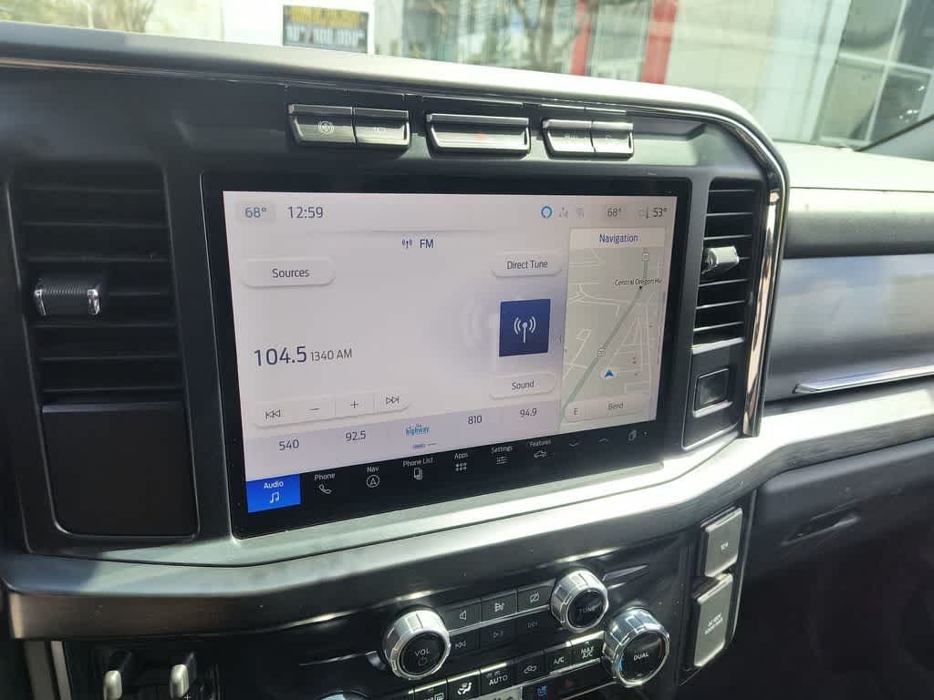 The exterior of this F-350SD Lariat exudes a bold, rugged charm, with its distinctive FX4 Off-Road Box Decal, 6 Angular Bright Anodized Step Bars, and chrome bumpers. The interior is equally impressive, featuring a premium B&O Sound System, SYNC 4 with Enhanced Voice Recognition, and a host of advanced technology and convenience features.