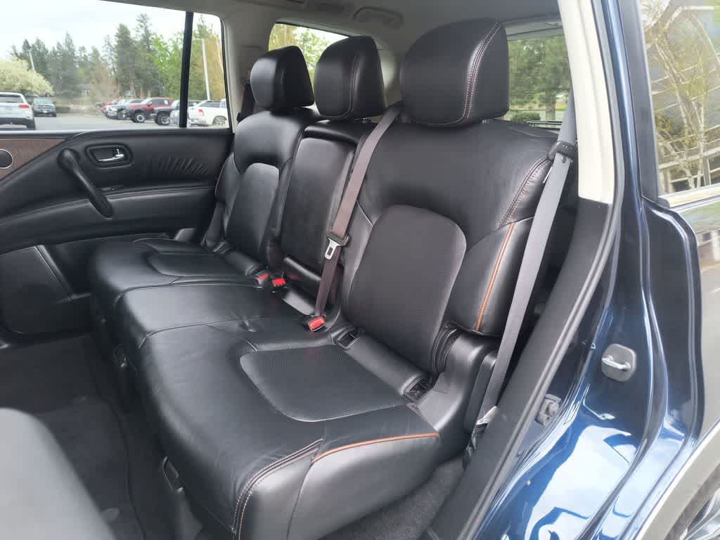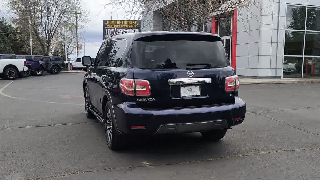 The Armada SLs striking exterior design commands attention with its bold presence and sleek lines. Complementing the sophisticated look are 20-inch painted alloy wheels, rain-sensing wipers, and a power liftgate for added convenience.